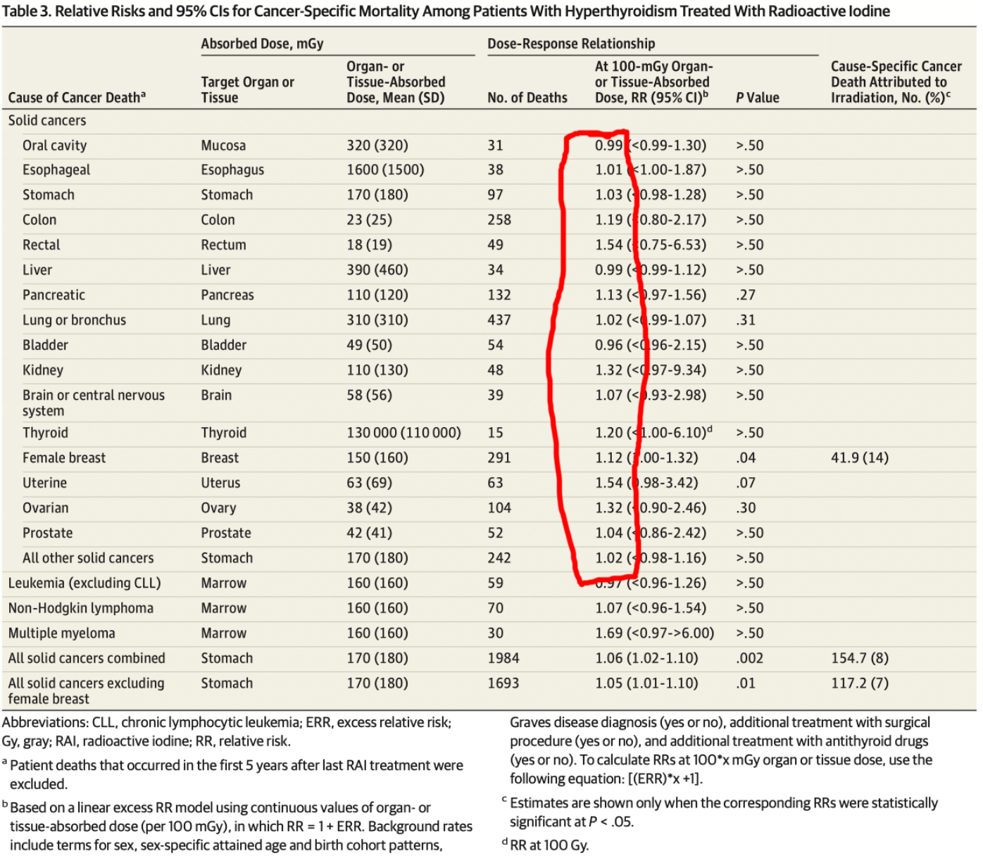 This study is based on earlier research based on Cooperative Thyrotoxicosis Therapy Follow-up Study Group data published more than 20 years ago. This study showed that total and site-specific cancer mortality rates were not found to be elevated in radioiodine treated patients compared with the general population.